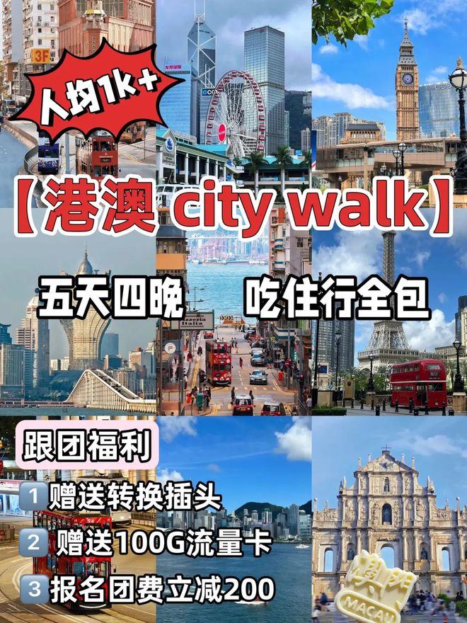 时间:5天4晚价格:人均1000+❤️明细:酒店+用车+导游+门票景点:维多利亚港、大三巴、浅水湾、港珠澳大桥、威尼斯人......·港澳旅行的暖心小tip♀️港澳的街头很适合city walk,穿一双舒适的平底鞋很重要当地充电宝很少,姐妹们要提前将手机、相机充满电,醉好是准备一个充电宝建议开通港澳流量,或购买一张香港本地的电话卡或上网卡