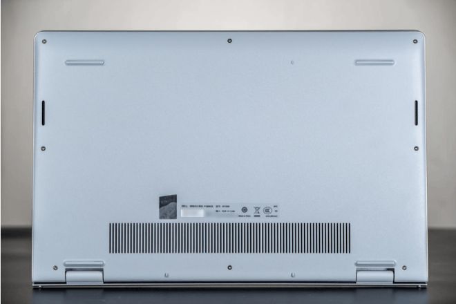 可以看到A面转轴处两侧各有一个橡胶条设计,其实这款Dell 15 笔记本电脑是翘起式转轴设计,让打开屏幕的同时还能自动抬高机身,给底部进风口留出更大的散热空间,非常不错。