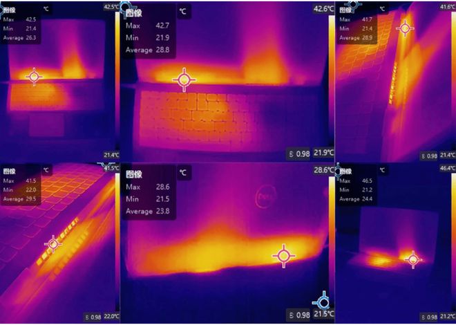 在跑分的时候我顺便拍下了热成像图,可以看到C面主要发热的位置在键盘左上角,下半部分掌托和触控板位置温度比较低,打字时候的手腕处不会感觉烫,散热是没什么问题的。